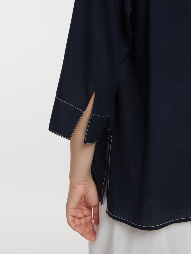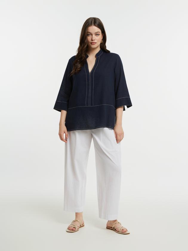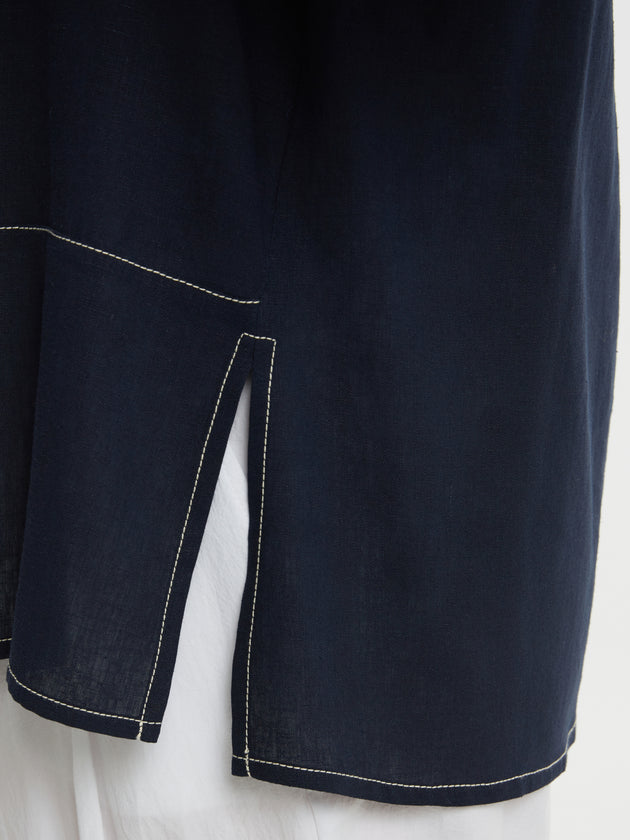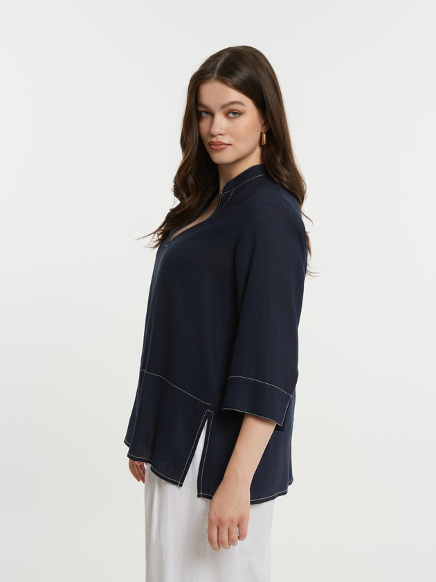 Sportiv-elegante Viskose/Leinen-Tunika in Dunkelblau