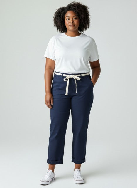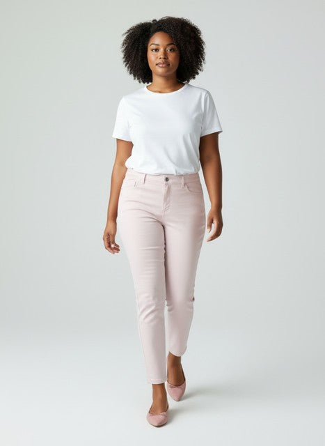 In dieser Variante sorgt ein kleiner Umschlag am Saum für einen frischen, modischen Akzent. Am Oberschenkel etwas weiter geschnitten und nach unten hin schmal zulaufend, bietet sie eine schmeichelnde und zugleich bequeme Form. Durch ihre elegante Linienführung wirkt sie besonders harmonisch bei schlankeren Oberschenkeln und unterstreicht eine feminine, schlanke Silhouette auf stilvolle Weise.