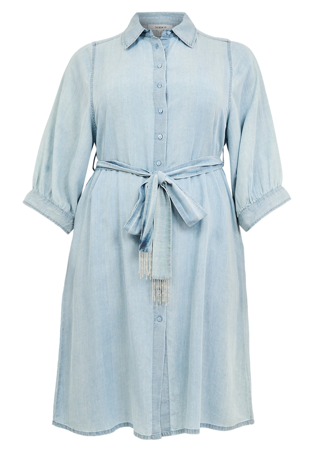 Das leichte, durchgeknöpfte Sommerkleid aus Dancel-Lyocell von YOEK FASHION überzeugt mit seiner luftigen Qualität und einem kleinen Gürtel – ein wichtiges Modedetail in diesem Frühling. Der Gürtel betont die Taille feminin, kann aber ganz unkompliziert weggelassen werden für einen lässigeren Look.