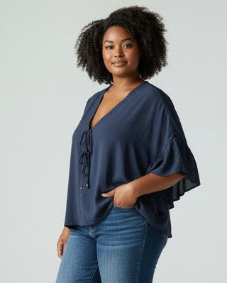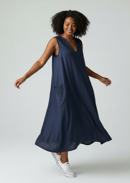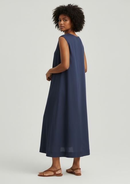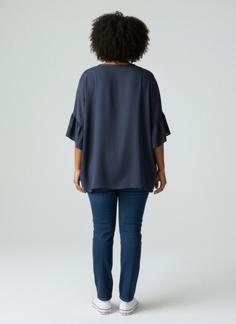 Sportiv-elegante Viskose/Leinen-Tunika in Dunkelblau